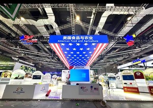 图:休斯敦亚裔商会的展位位于在本届进博会的“美国食品与农业”展区中。